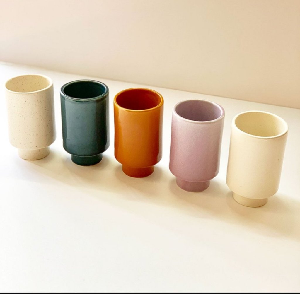 Justina Blakeney, the creative force behind The Jungalow, has released a new product: ceramic cup! They come in five colors and buyers have the option to buy them individually, as a set of one color or a multicolored set. Check them out below.