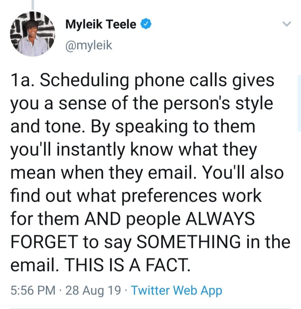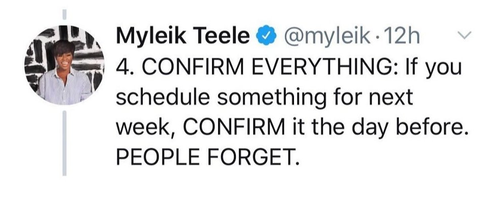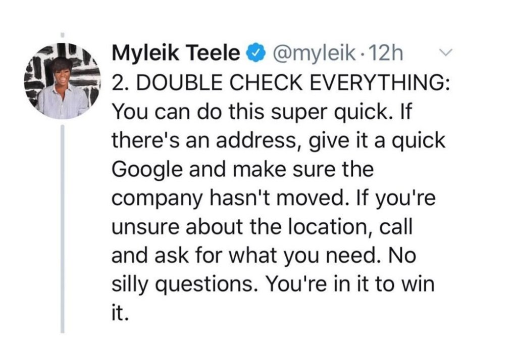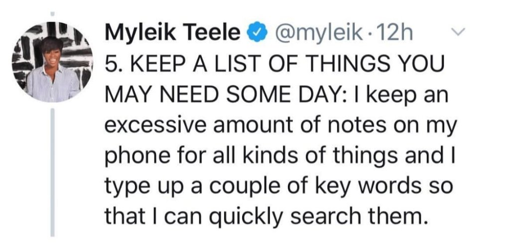 Myleik is always dropping FREE gems on her social media. Whenever an entrepreneur gives free advices, take notes! Her Twitter thread last night was no different. These tips can seem small, but many overlook them and they can be game changing. There are a few I can work on myself. Grab a pen and paper and get free game below because #mytaughtyou.