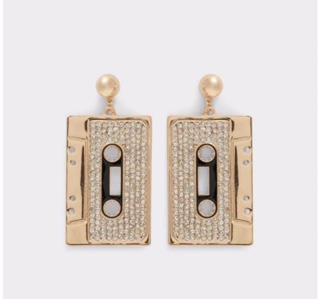 The 80’s and 90’s babies will appreciate these. These gold, rhinestone encrusted, and fux pearl accented cassette tape earrings are sure to turn heads. Bonus, they’re a steal!