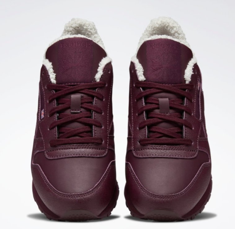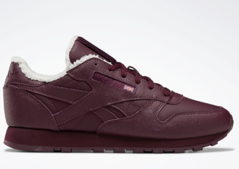 Winterize a your wardrobe with a classic shoes with a fashionable twist. The classic Reebok silhouette in a rich wine is perfect for the winter months. It is upgraded with a Sherpa lining to get your feet warm.