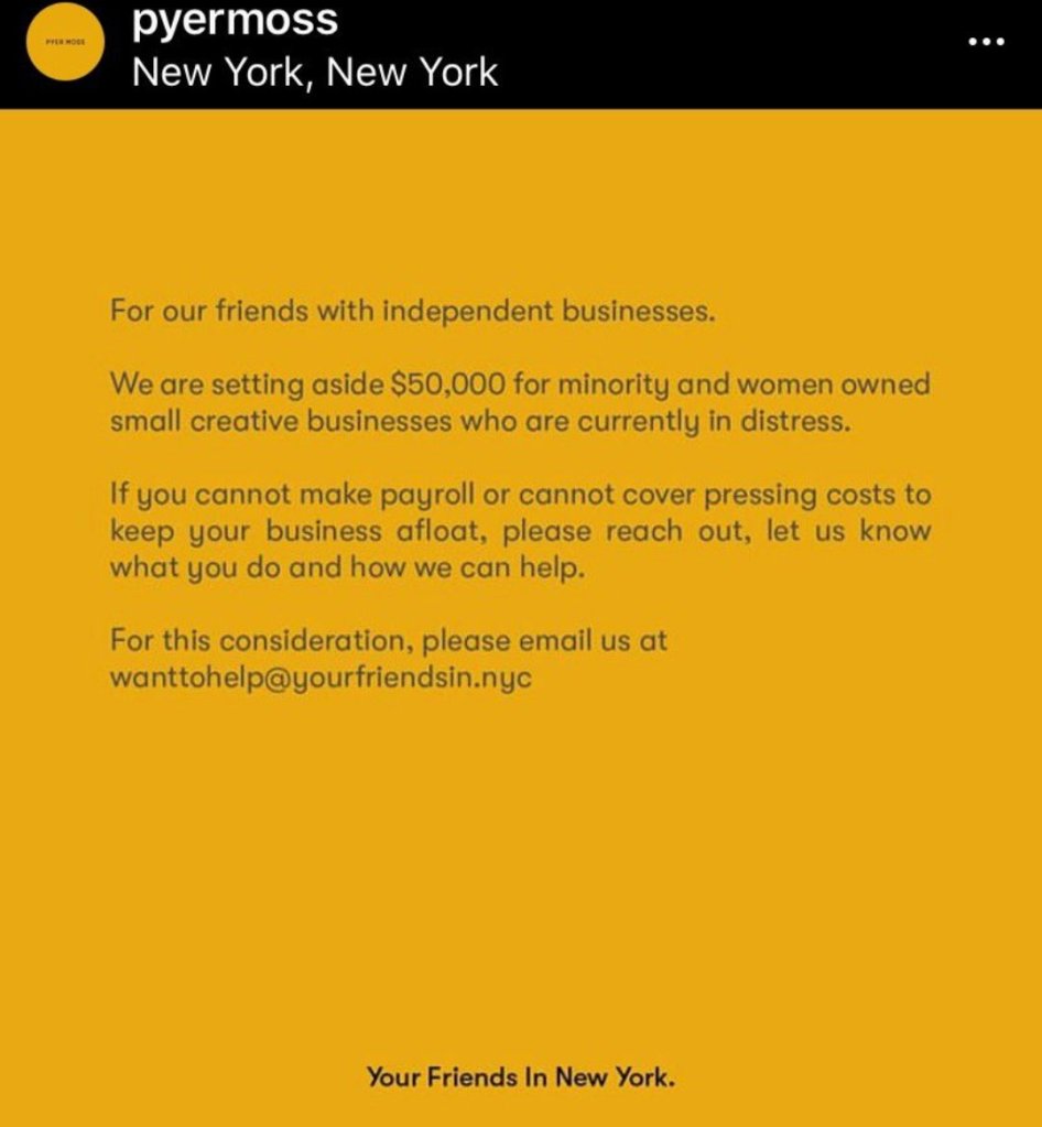 Kerby Jean-Raymond, the head 8r the famed Pyer Moss brand announced he has set aside $50,000 in aid for minority and women owned small businesses.