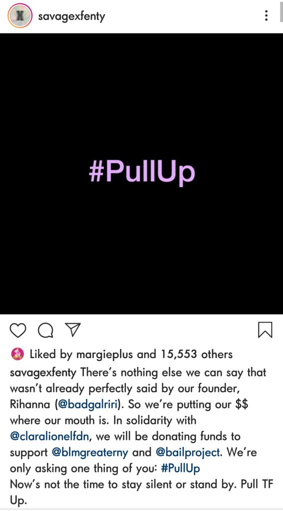 1. Glossier 2. Savage x Fenty 3. Puma 4. Pattern Beauty 5. Fashion Nova 06/04/20-This list was updated to include Fashion Nova. This list will continue to be updated as soon as more info comes in.