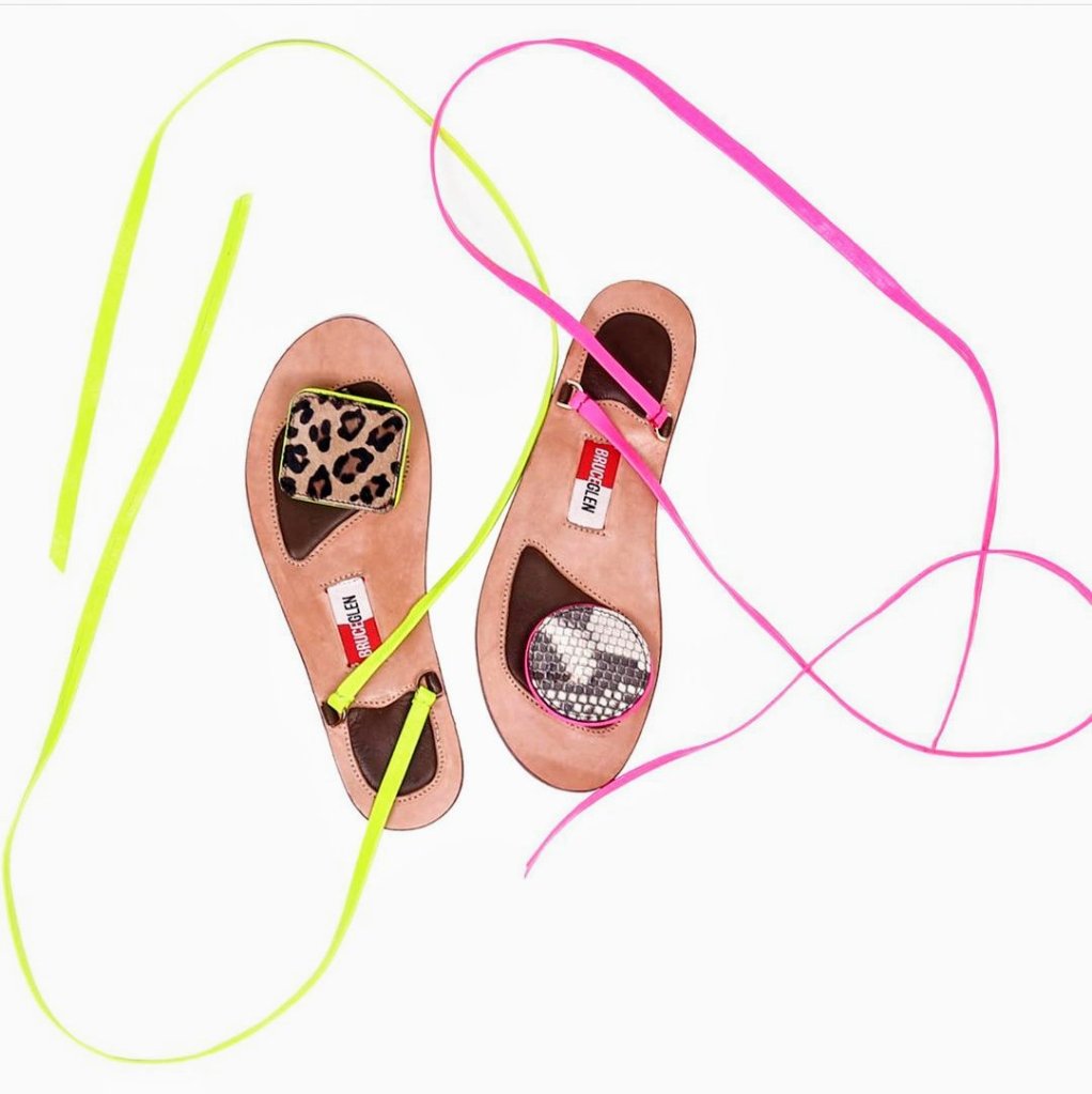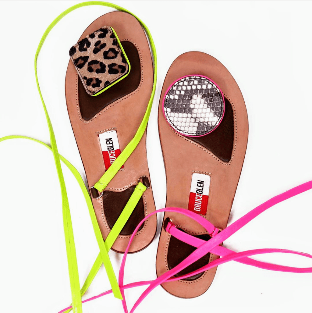 These mixed animal printed sandals with complimentary neon pink and green legs straps add the perfect statement to an ensemble. Shop here.
