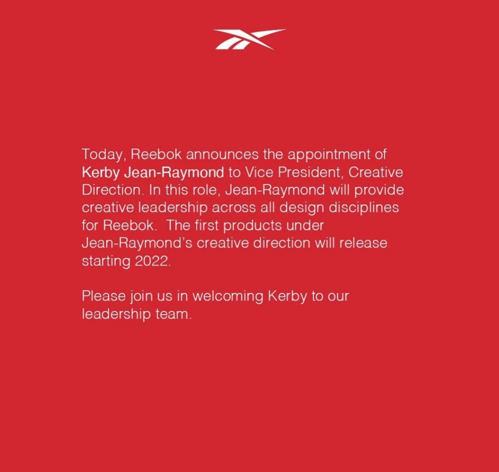 Kerby Jean-Raymond, CFDA Menswear Designer of the Year Award recipient for his brand Pyer Moss, has been names Vice President of Creative Direction at Reebok. He has had a partnership with the brand for the past few years. In his new role, he will oversee all creative branding decision across Reebok’s portfolio. He will also be at the helm of the newly initiated Product with a Purpose program which fall under its United Against Racism initiative.