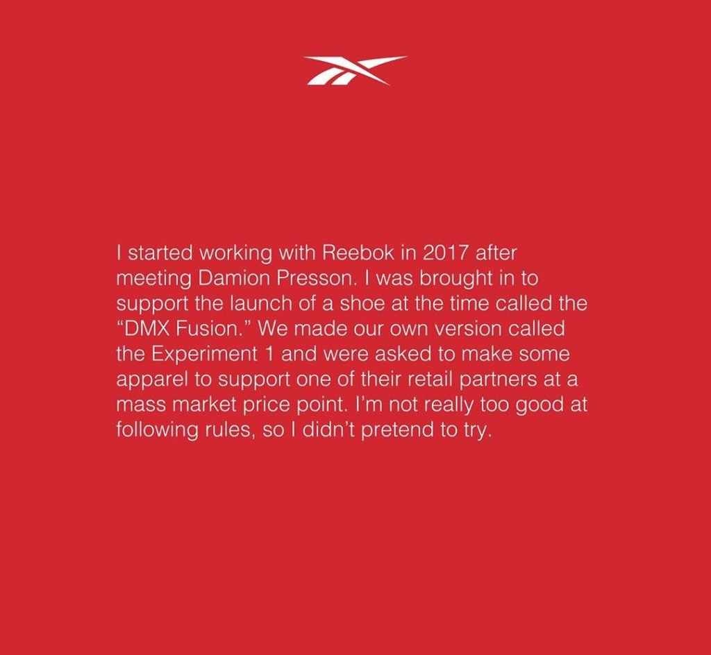 Here is was Kerby had to say about his relation with Reebok and how this position came into fruition.