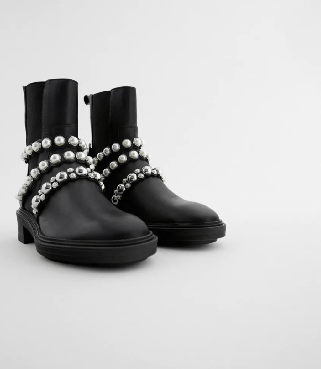 Add a bit of edge and femininity with these pearl adorned booties. These will pair well with a baby doll dress and moto jacket or of course jeans, a tee, moto jacket and layered pearl necklaces. Buy at Zara here.
