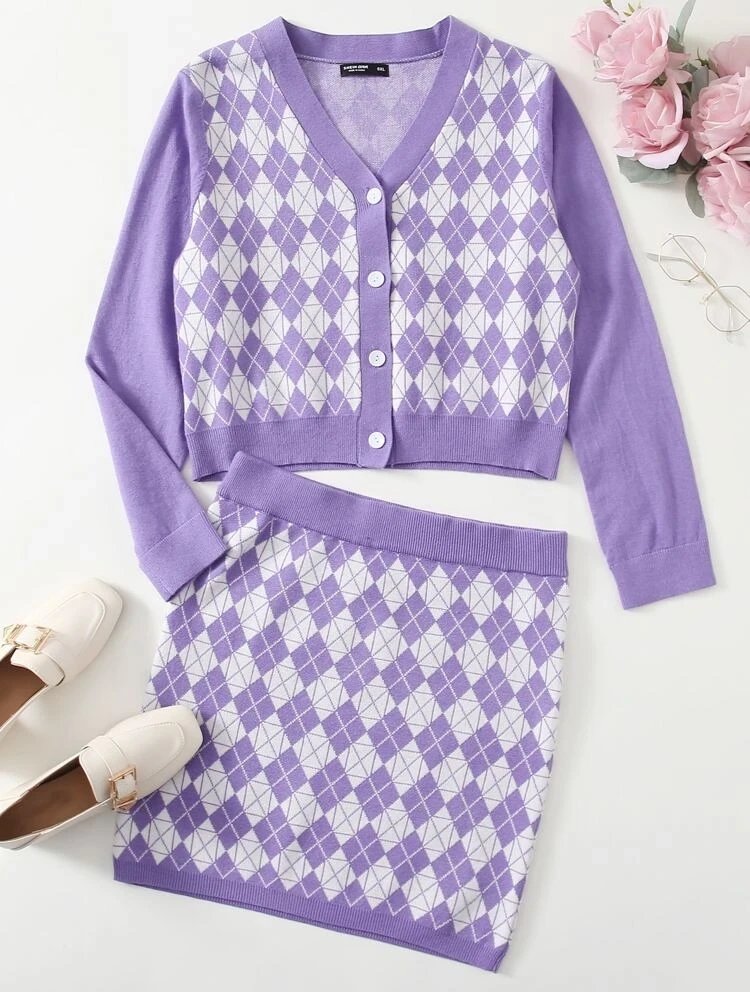 7. Argyle Pattern Sweater and Skirt Set