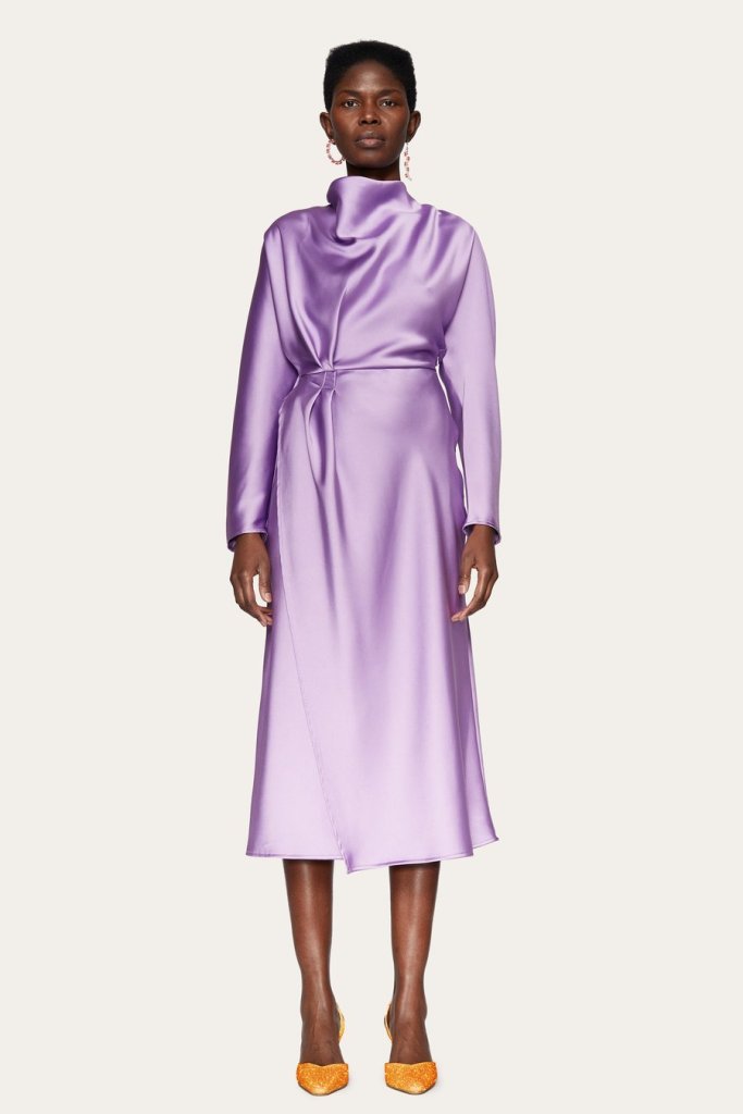 1. Silky Wrap Dress 2. Puff Sleeve Statement Bodysuit 3. Ribbed Cardigan and Cami Set 4. Long Sleeve Tiered Dress 5. Two Piece Crop Top and Skirt Set 6. Sheer Lace Sleeve Top 7. Argyle Pattern Sweater and Skirt Set 8. Lavender Floral Babydoll Dress 9. Lavender Suit 10. Lavender Denim Dress