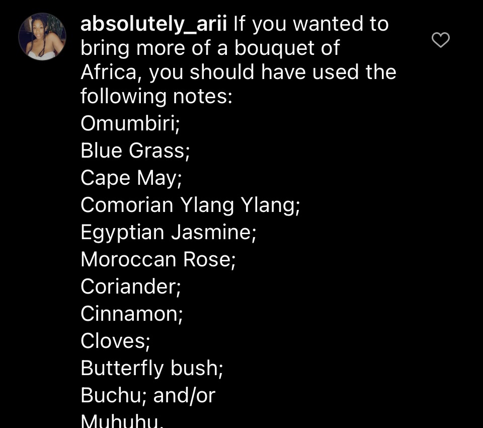 Social media was in an uproar over the roll out. The packaging was said to be inspired by “handmade African mud cloth designs,”but no mention of what country, tribe, or the meaning of said designs. Also, they simply repackaged their signature scents and did not create new ones for collection. It gives very much “ How can we spend the least amount of money, show our “allyship”, while also making the most profit?”