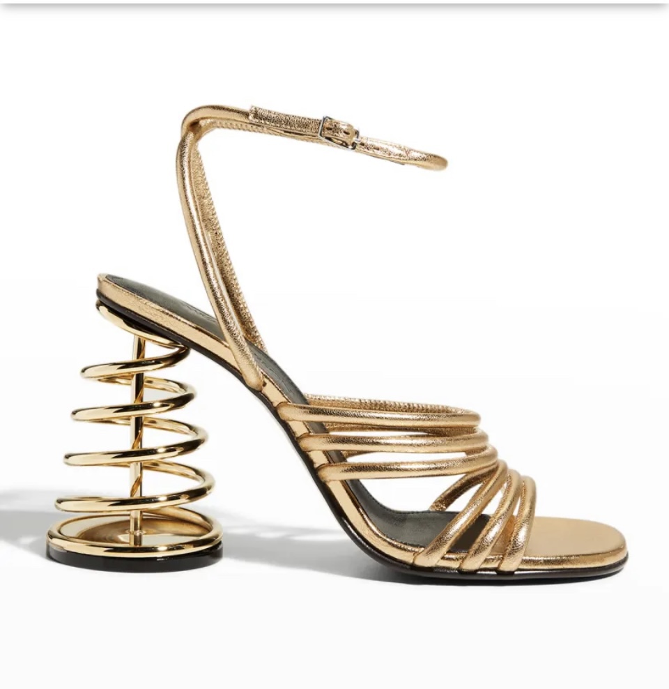 With Fashion Month upon us, you may be looking for a statement shoe that will be sure to land you on the street style sites. Metallica are always having a moment, and you can do no wrong with gold. These spiral heeled sandals by JW Anderson are it, okay!