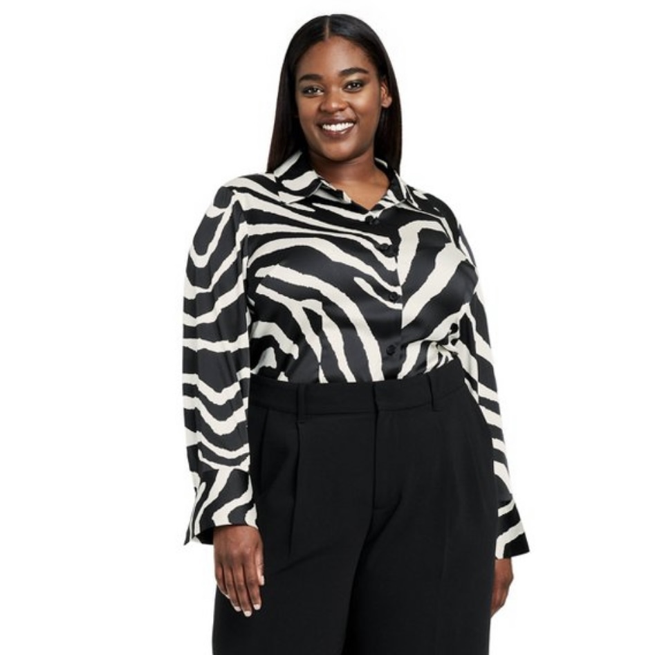 I’m a sucker for an animal print and this zebra print blouse is a satin like fabric is right up my alley. I wear blouses like this with skinny jeans and stilettos or with a pencil skirt or slacks.
