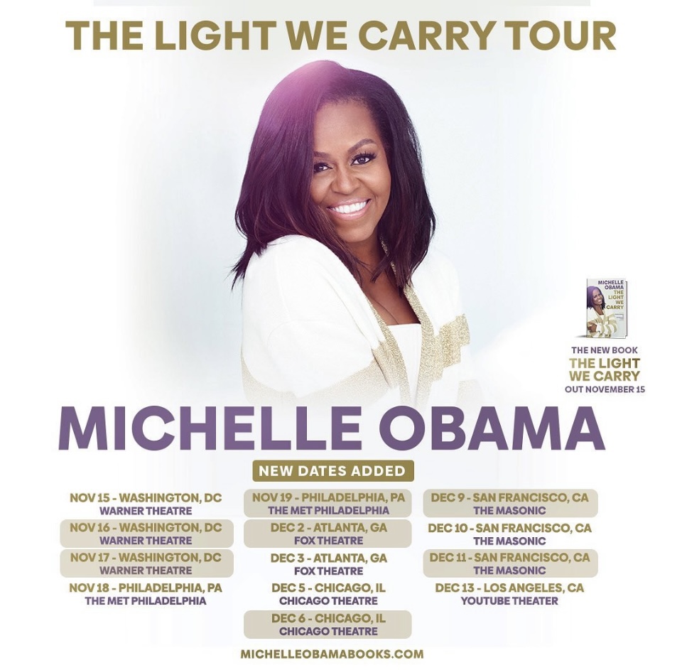 Auntie ‘Chelle is hitting the road again! This time for her book , The Light We Carry. What began as a small six city tour has expanded to a thirteen city tour. So if she’s coming to a city near you, get ready!